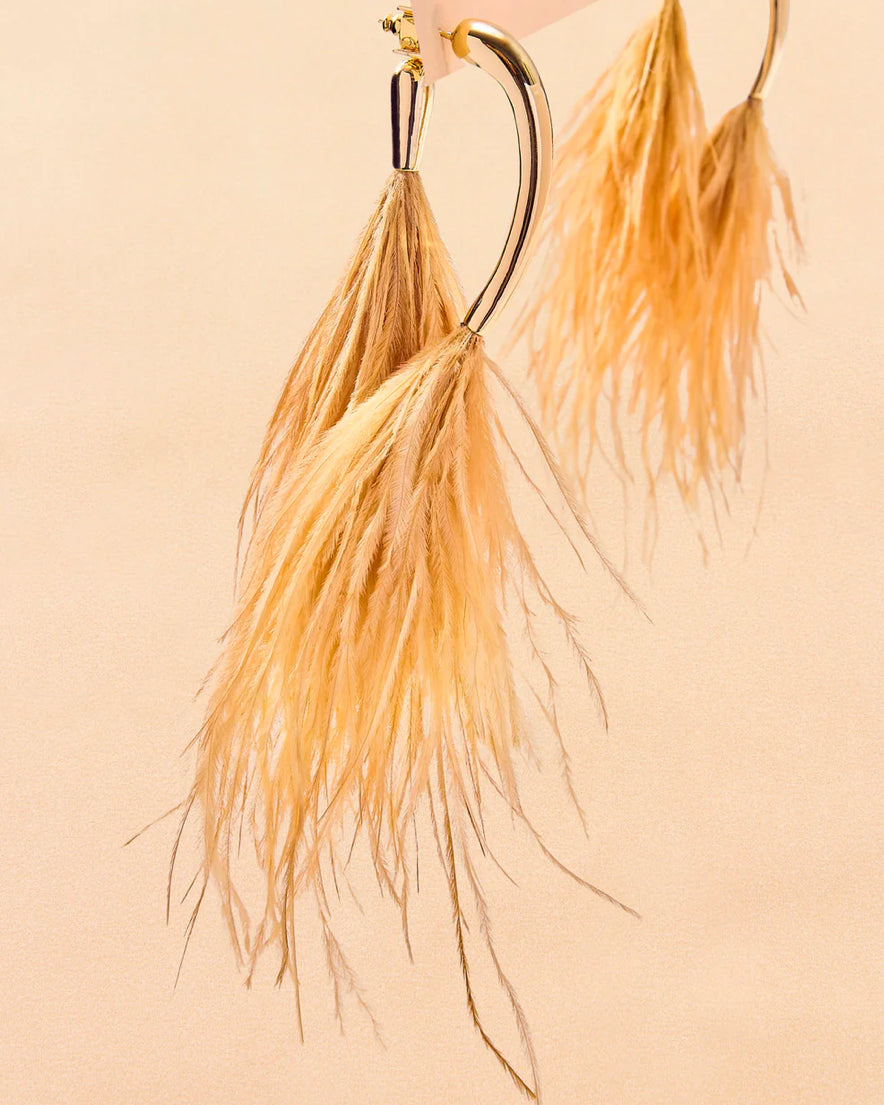 Una interpretación poética del metal orgánico y la ligereza fluida. Elaborados en metal pulido con plumas suaves y etéreas, estos pendientes vienen en distintos baños y tonos para diferentes estilos.